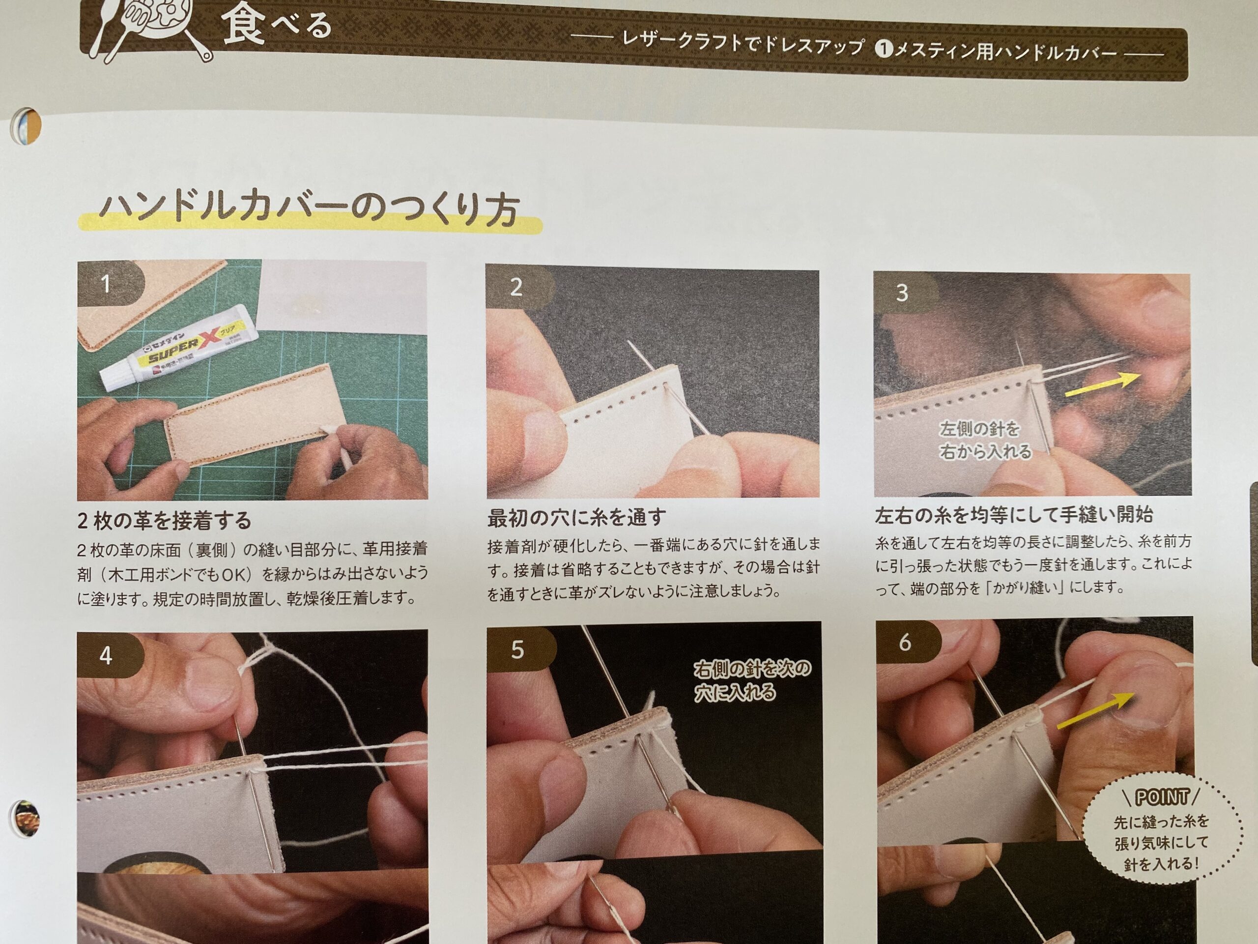 裁断、穴あけはされているので、説明書通りに縫い付けていきます